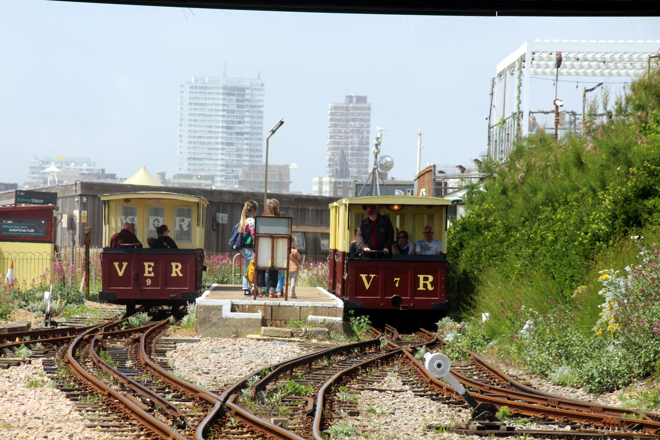 Seen though the car shed is Peter Pans Playground/Halfway with 9 working Black Rock to Aquarium and 7+ 8 with a service from Aquarium to Black Rock.