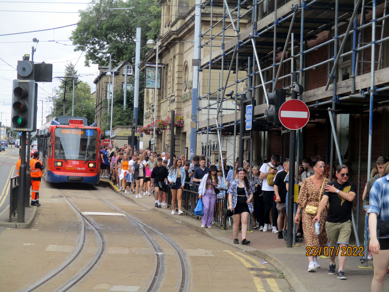 And still they come! 106 has still not departed for Malin Bridge as people still pour off the tram. (All Photographs by Stuart Cooke, 23rd July 2022)