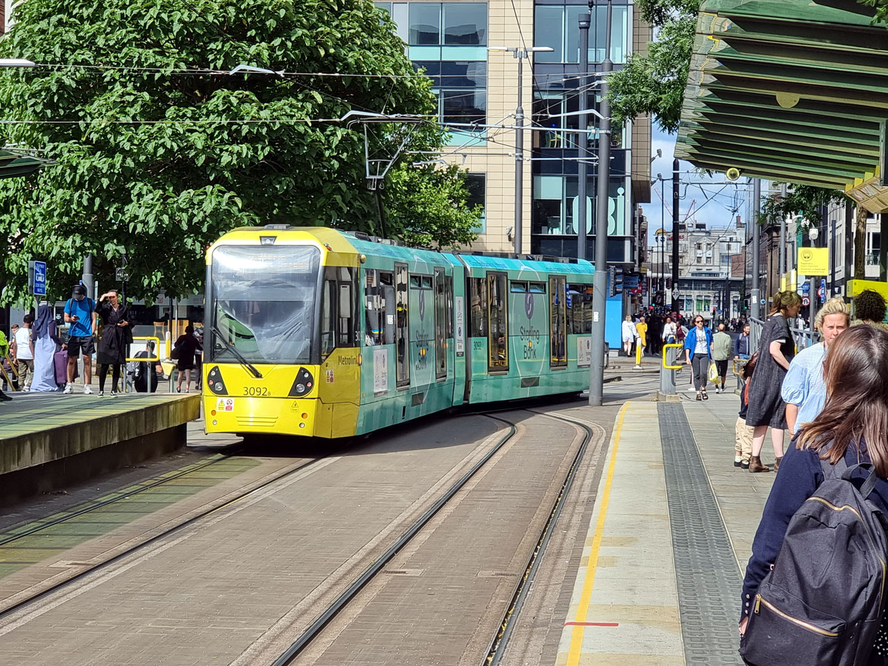 And 3092 again as it departs from St Peter’s Square. (Photographs x4 by Michael Morton, 14th July 2022)