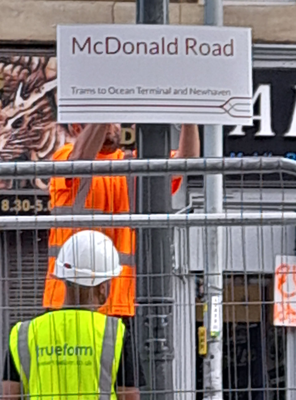 McDonald Road stop sign being put into place. (Photographs x2 by John Hampton, 25th August 2022)