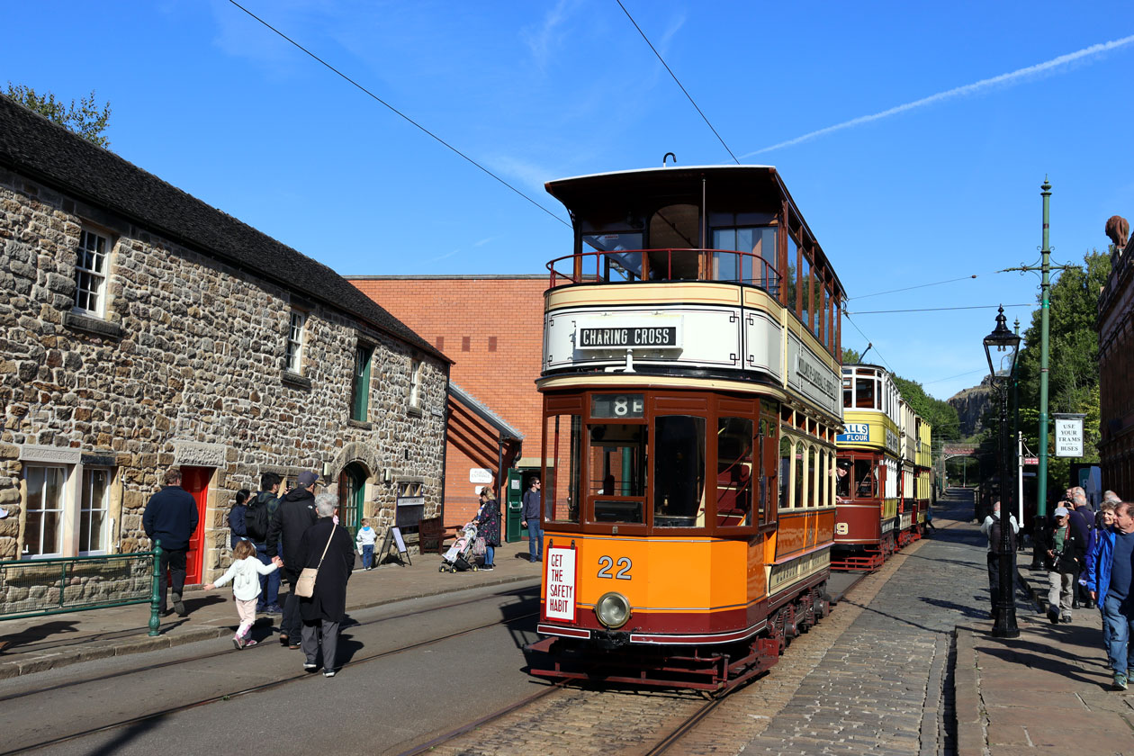 Glasgow 22 at Stephenson Place having just come down as part of the Queen Elizabeth II procession. Blackpool & Fleetwood 40 and Cardiff 131 had already pulled forward to the terminus for loading by this point. Leeds 399, Sheffield 74 and Chesterfield 7 are also seen in this view.