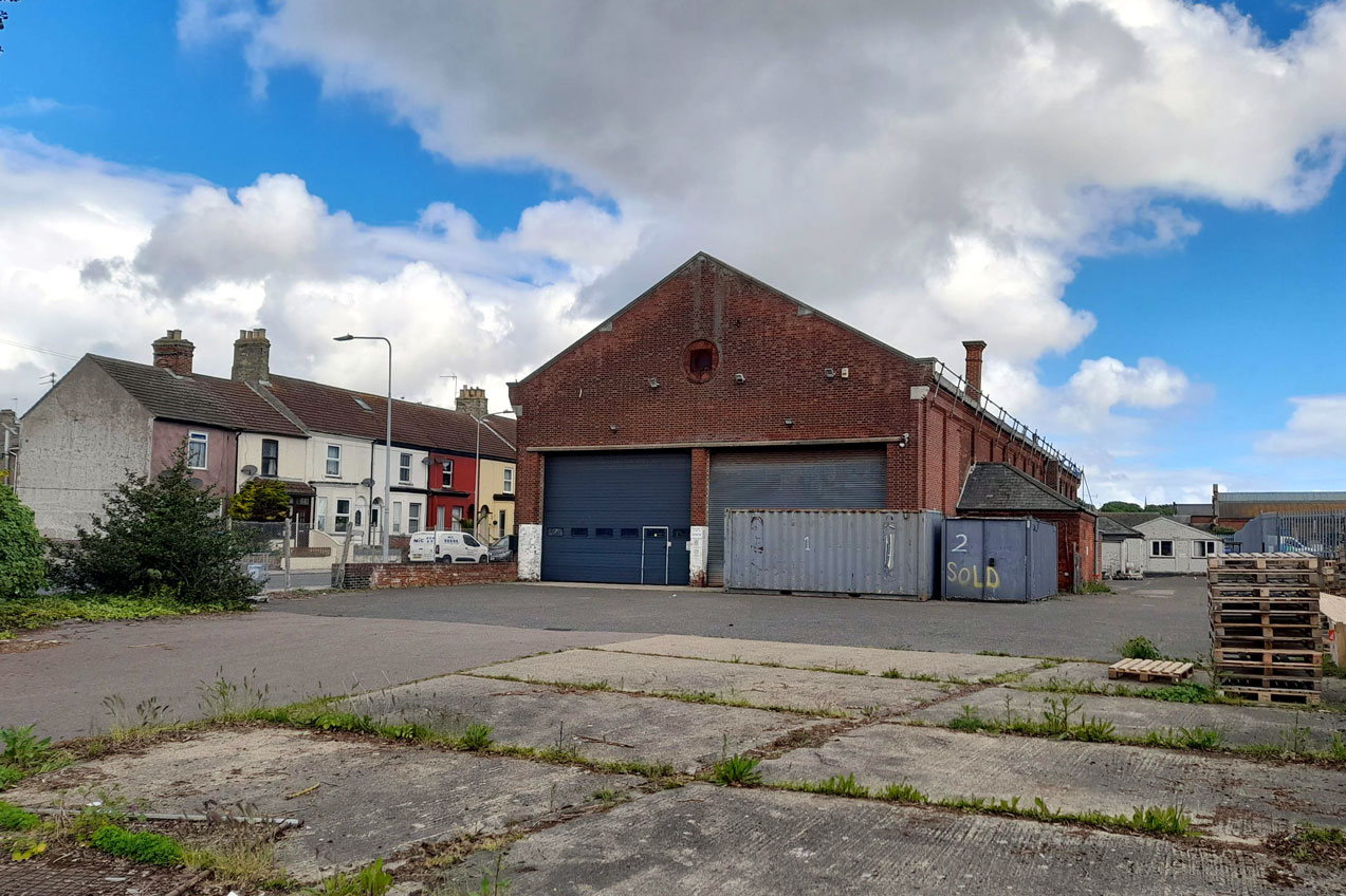 Two photos showing the former tram depot as it is today, seemingly unused. (Both Photographs by Bob Hodges, 29th May 2022)
