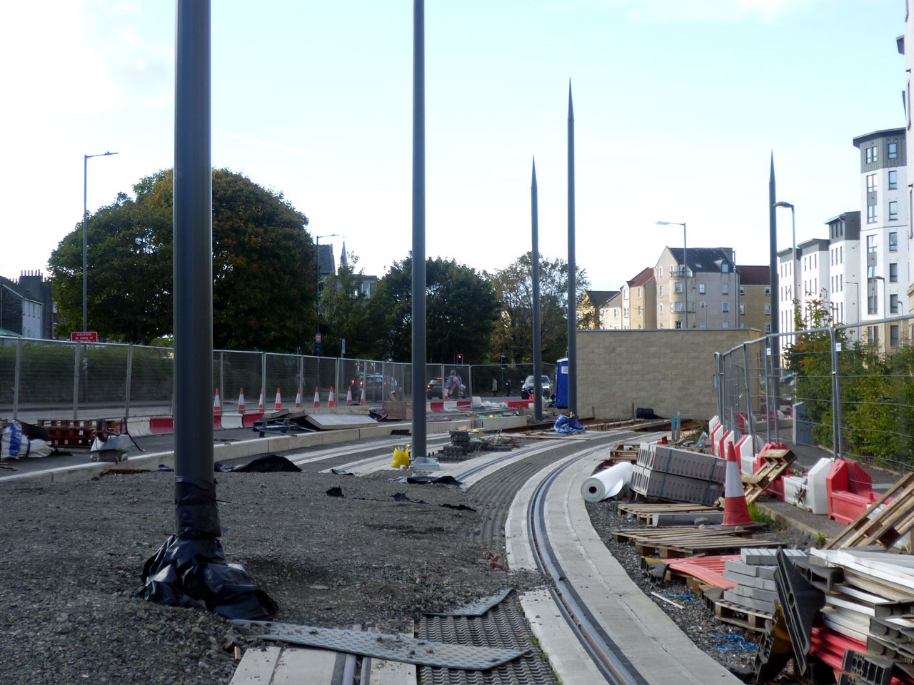 Here we are looking west over what will be the secure stabling area and towards the end of the line with the wall of the small staff amenity building seen. Lindsay Road is beyond the fence on the left.