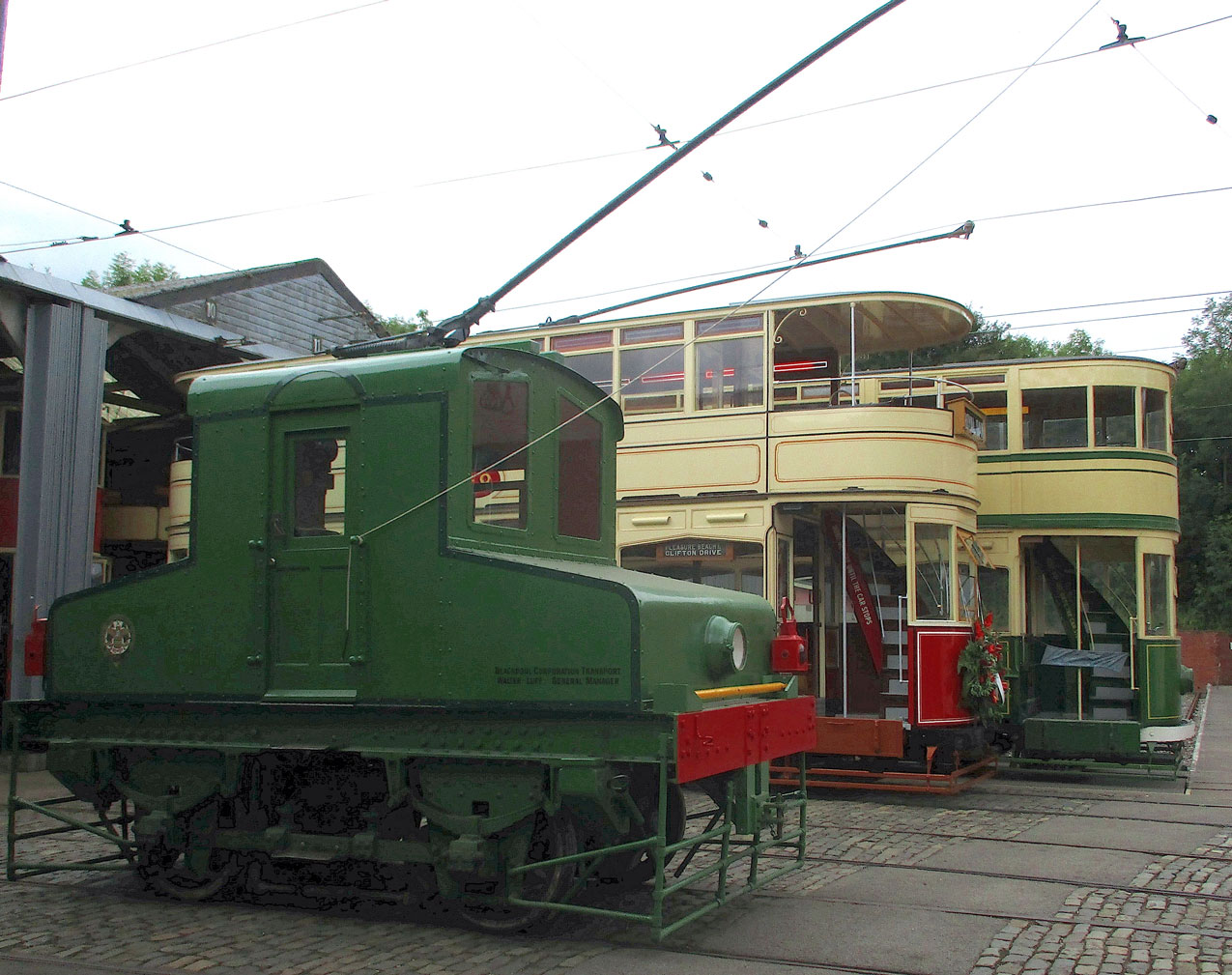 With 49 on the far side standing on the Traverser, start of the day 40 is in the middle with the Electric Locomotive closest to the camera. To add to the celebratory mood of the day 40 also has floral decorations on the front. (Photograph by Hazel Quarmby)