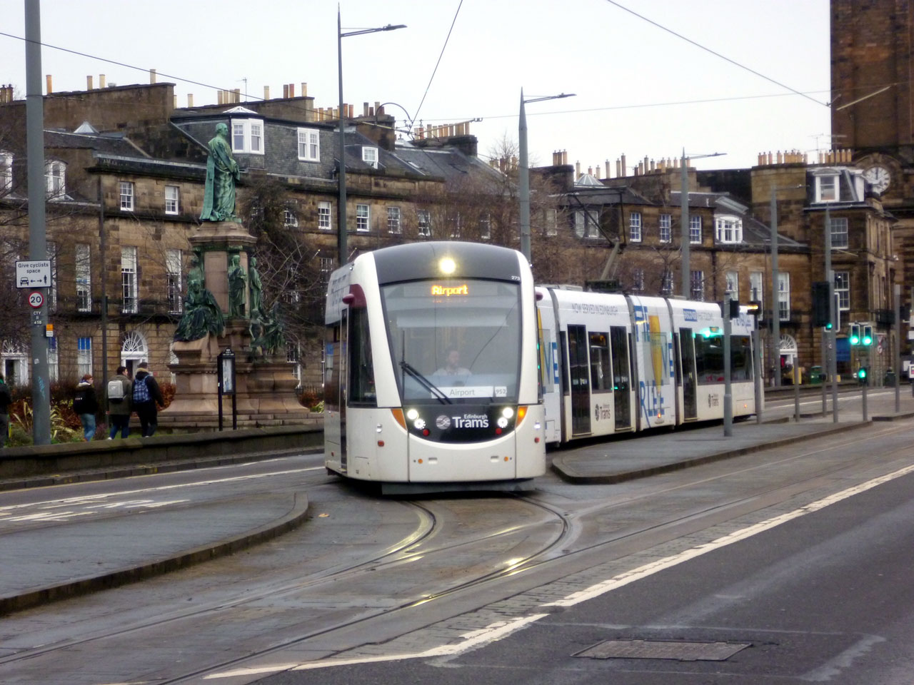 273 is then seen departing and joining the crossover. Coates Crescent is on the left with the statue of W E Gladstone (1809-1898), the Victorian statesman and four time Liberal Prime Minister. His parents were Scottish.