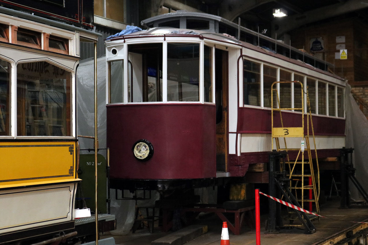 Inside the depot – and with Newcastle 114 in front of it – Gateshead 10’s overhaul is continuing. It remains raised with its bogies being worked on elsewhere within the depot but good progress is being on the body with attention to the roof and paintwork. (All Photographs by Trevor Hall, 5th January 2023)