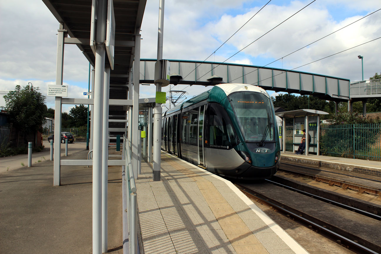 The pedestrian bridge makes photography on the Hucknall/Phoenix Park bound platform a little awkward with it dominating the scene. This image shows 226 calling at the stop on the way to Phoenix Park.