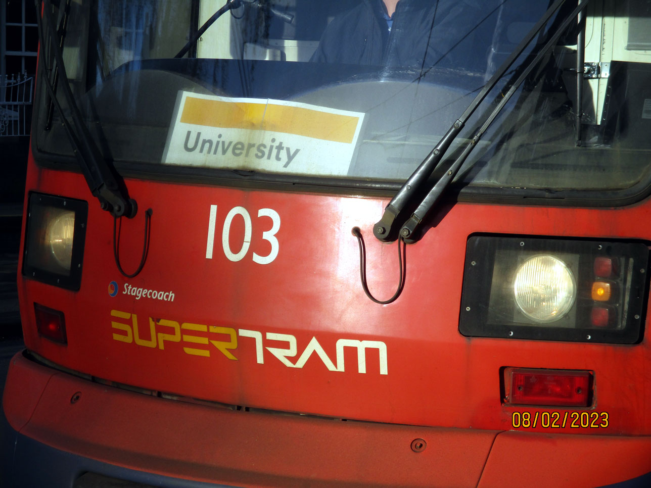 A rather rudimentary piece of paper was placed in the windscreen to show the destination of the tram “University”. (Both Photographs by Stuart Cooke)