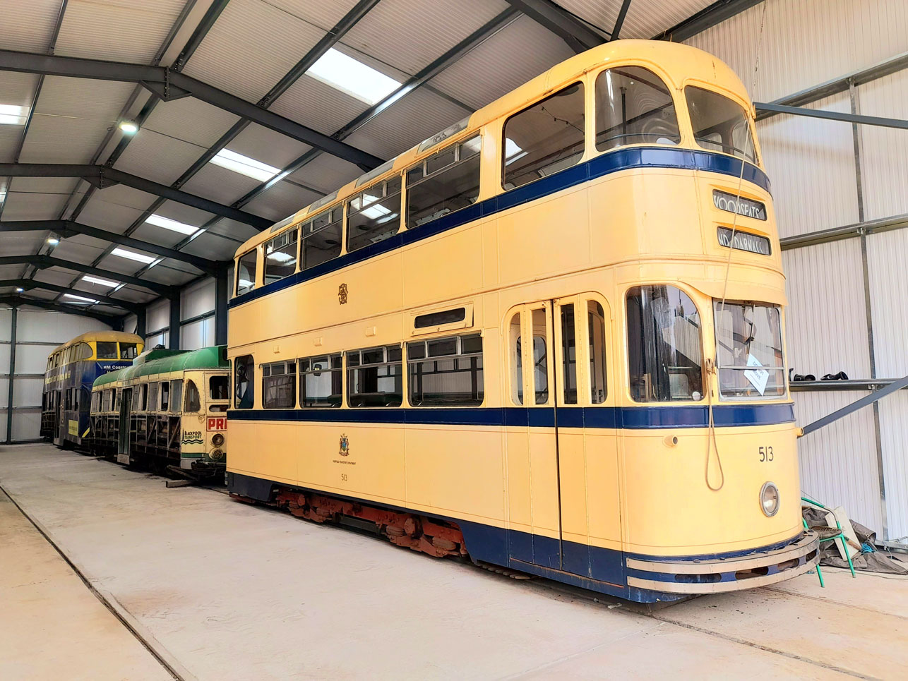 Inside the new depot and we see that 513 has company with Blackpool cars 625 and 726 behind. (All Photographs by Bryan Grint, 9th April 2023)