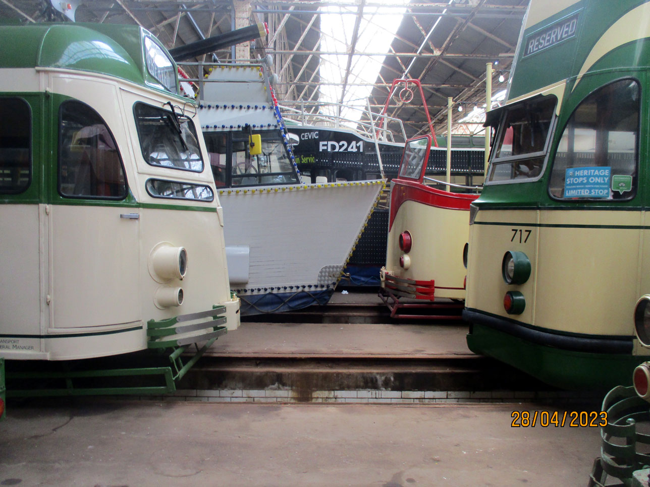 We’re just being nosey here… Trams nose to nose in the depot. Left hand side is Brush 631 and the Frigate with the right featuring Balloon 717 and Boat 227. The Trawler is just at the back of the photo.