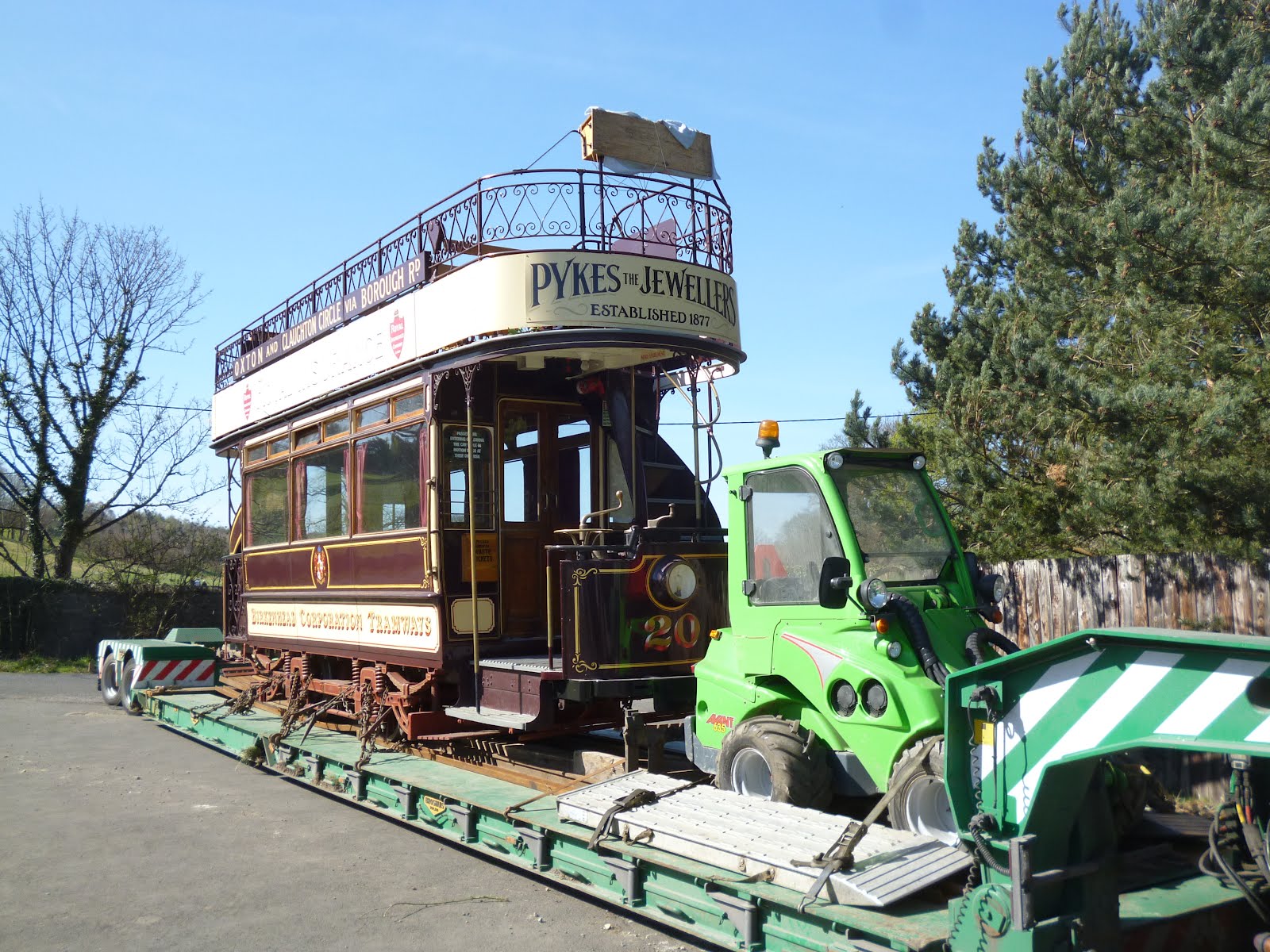 Another great moment in tram preservation history, as Birkenhead 20 arrives at Beamish in the safe hands of Scott’s hauliers. (Photo by Paul Jarman/Beamish Museum Ltd.)