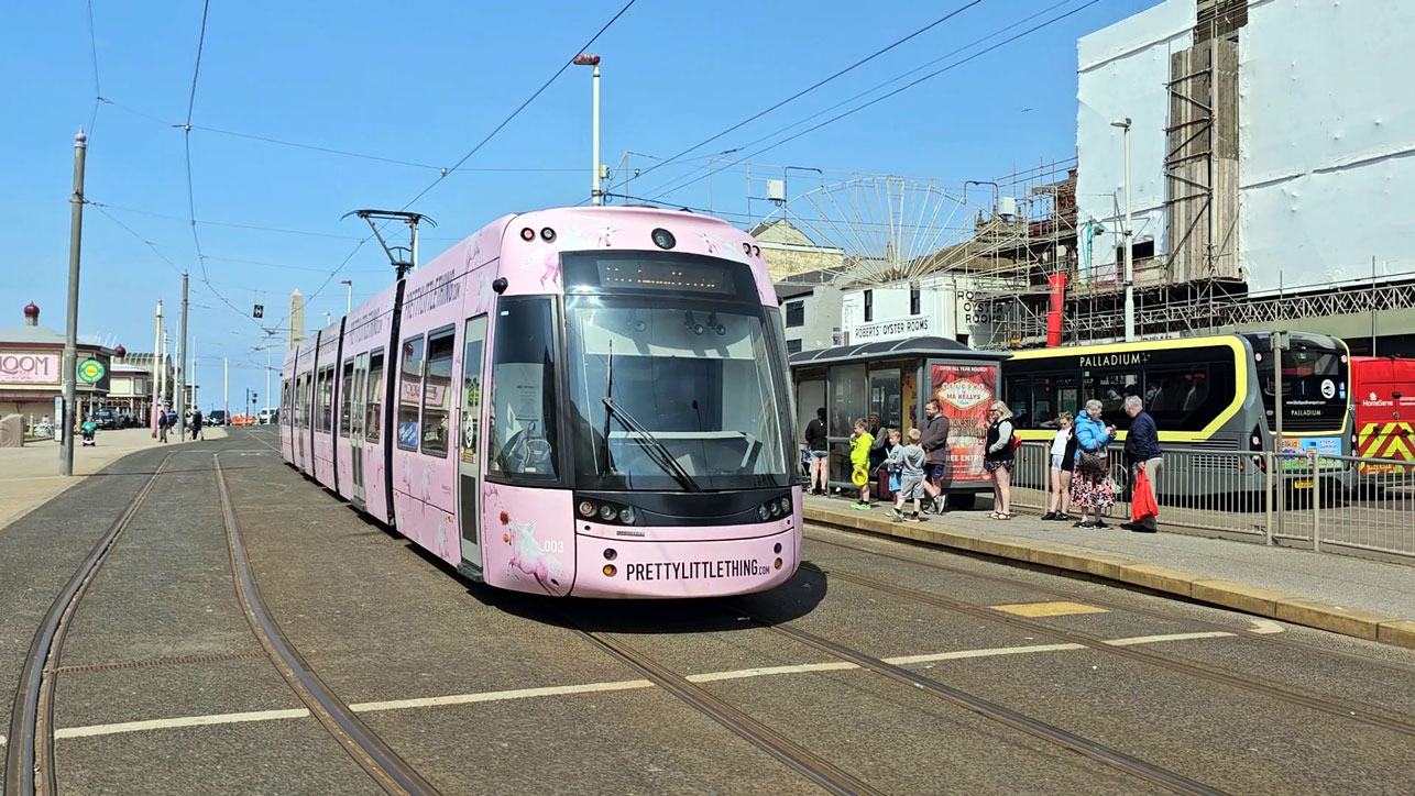 003 is one of the trams fitted so far. The cameras of ODAS are viewable below the destination screen. (Photograph by Michael Morton. 22nd May 2023)