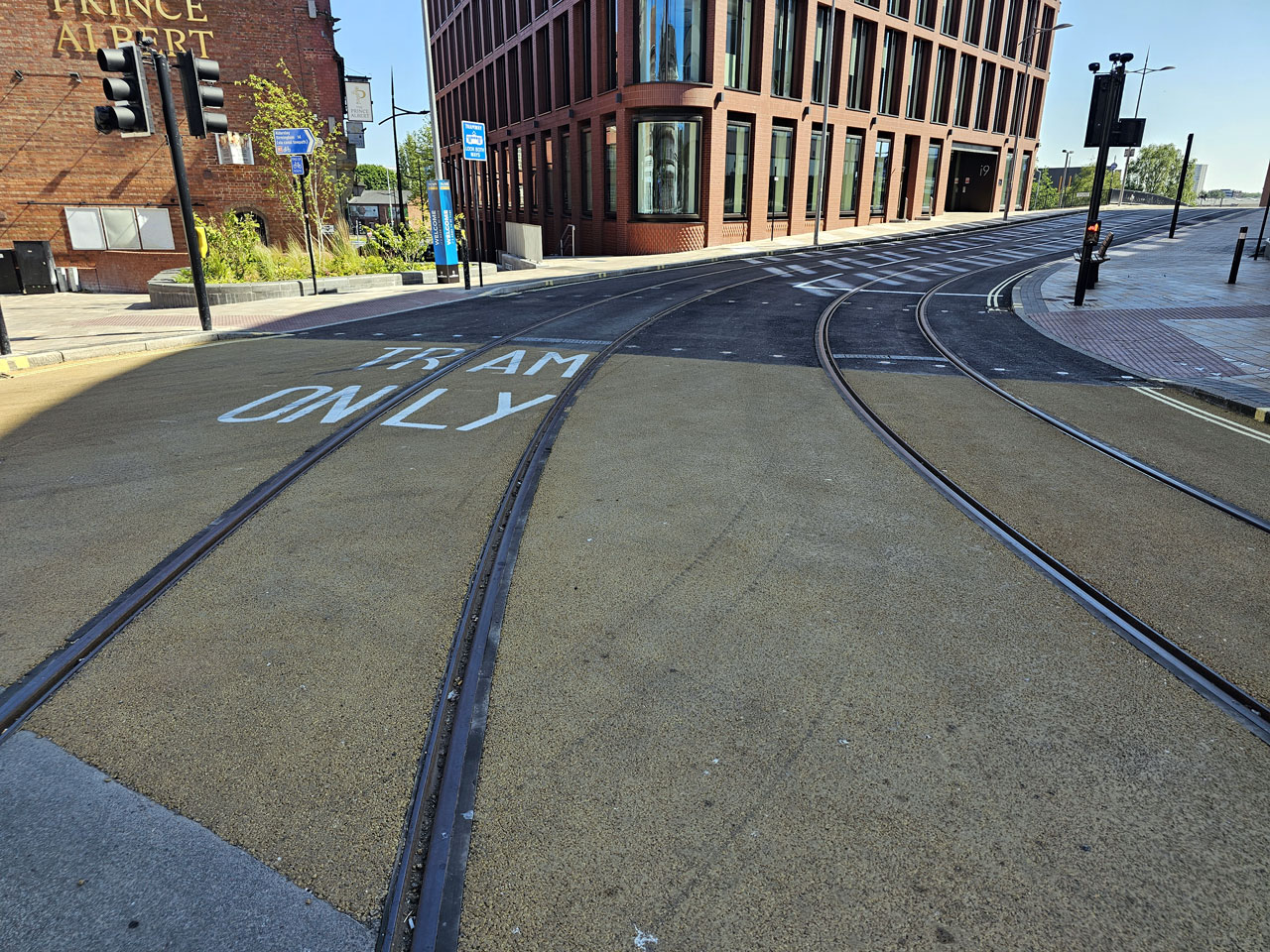 Turning from Piper’s Row to Railway Drive and “TRAM ONLY” markings have been put down.