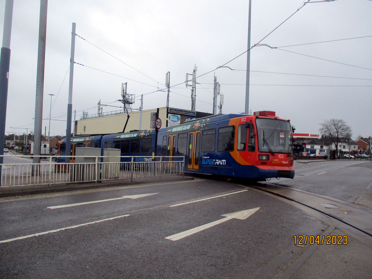 In this photo we see 102 as it heads away from Gleadless Townend when working a Blue route service to Halfway. Of course, Gleadless Townend is an important interchange stop as it is either your first or last opportunity (depending on direction of travel) to switch between the Blue and Purple routes. (Photograph by Stuart Cooke, 12th April 2023)