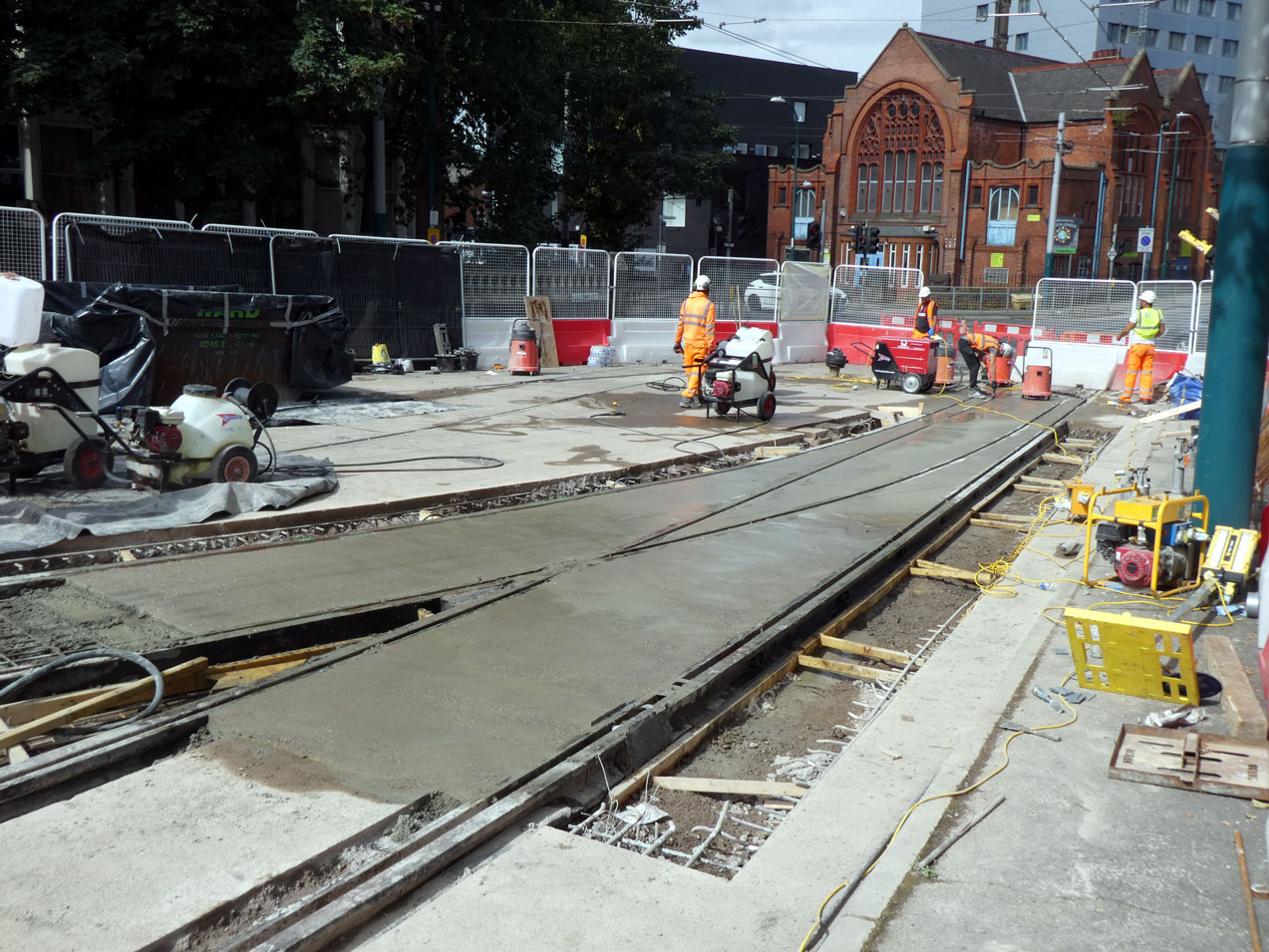 With the work concentrating on the tracks through The Forest stop and the points at each end in this photo taken on 24th August we see that new track has been laid and concrete has also been put down.