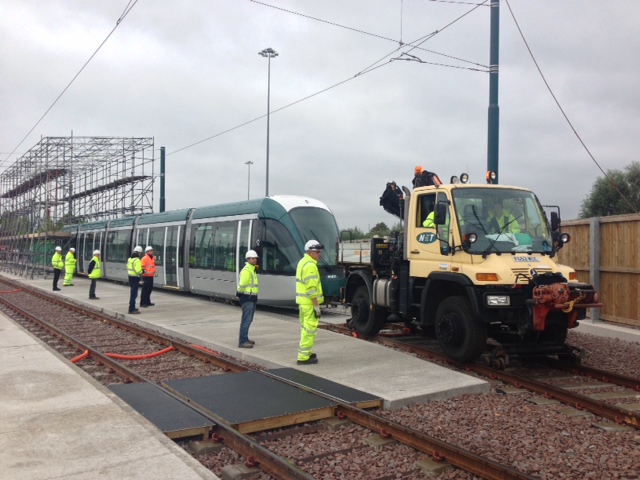 Nottingham Express Transit Citadis 216 arrives