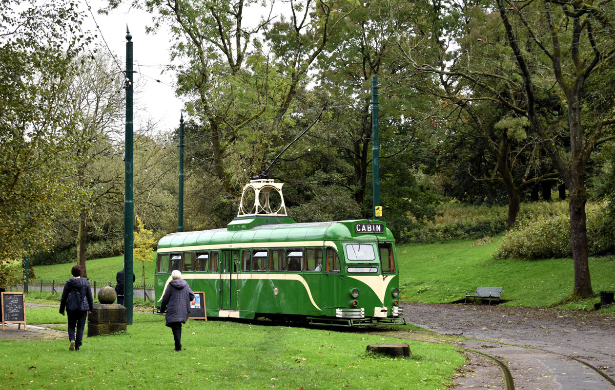 Prospective passengers hurry across the grass as Blackpool 623 approaches the Museum stop on its journey down to Middleton Road. (All Photographs by Donald Brooks, 1st October 2023)