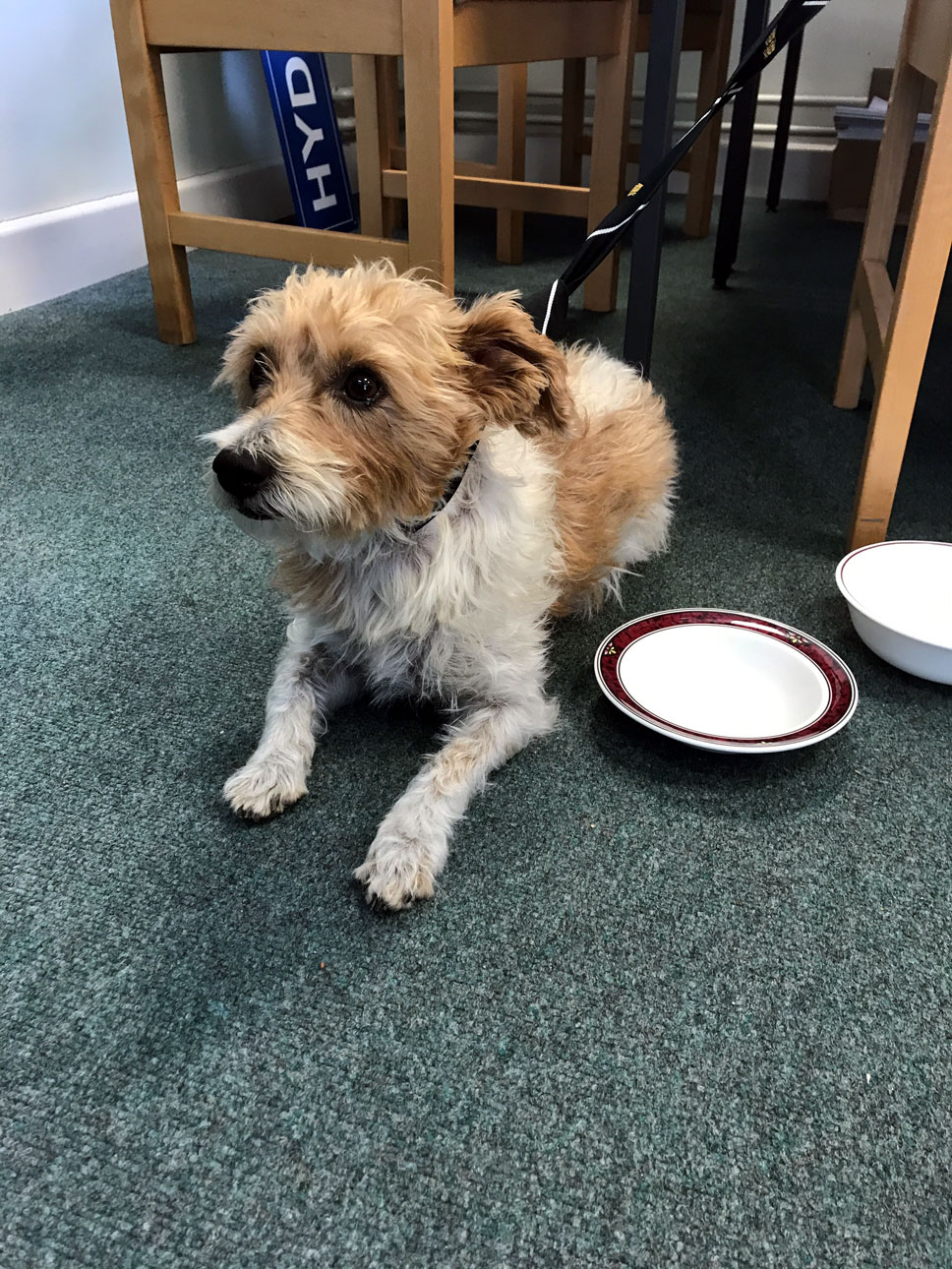 Loki waits in the office at Crich Tramway Village after his adventure. (Photograph courtesy of Crich Tramway Village)