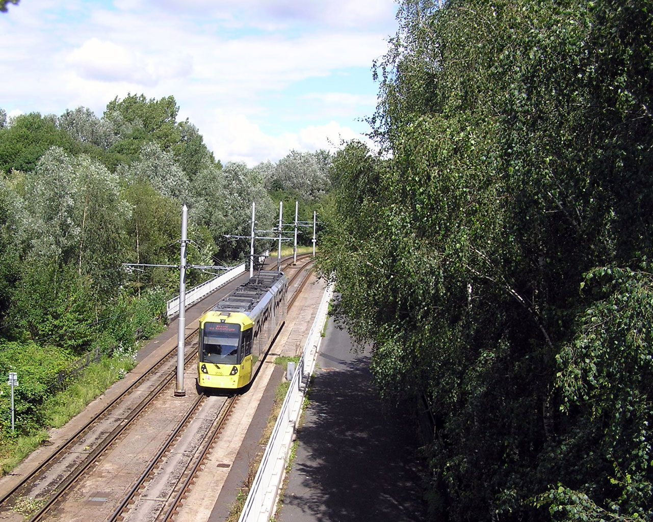 Then on 18th July 2023 and 3116 is seen working a service to Weaste (trams weren’t going to Eccles due to trackworks) in the same location. The main point of connection to allow us to tell it’s the same location is the pathway on the right which remains in situ. (Both Photographs by Keith Chadbourne)