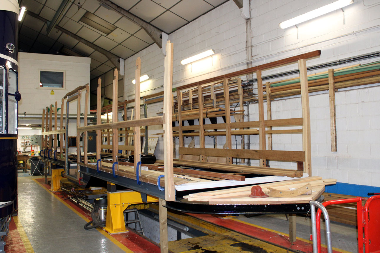 The final assembly of Blackpool 298’s main body frame is at an advanced stage as is well illustrated in this view.