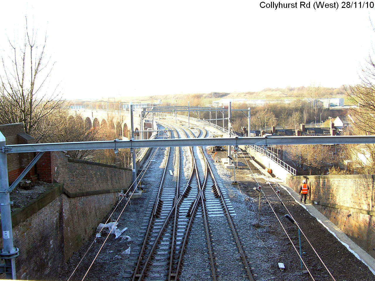 On 28th November 2010 we are back at the same location where tracks are now laid with overhead also in place. It would still be nearly two years before trams would start running with the first services to Oldham Mumps running in June 2012. (Both Photographs by Keith Chadbourne)