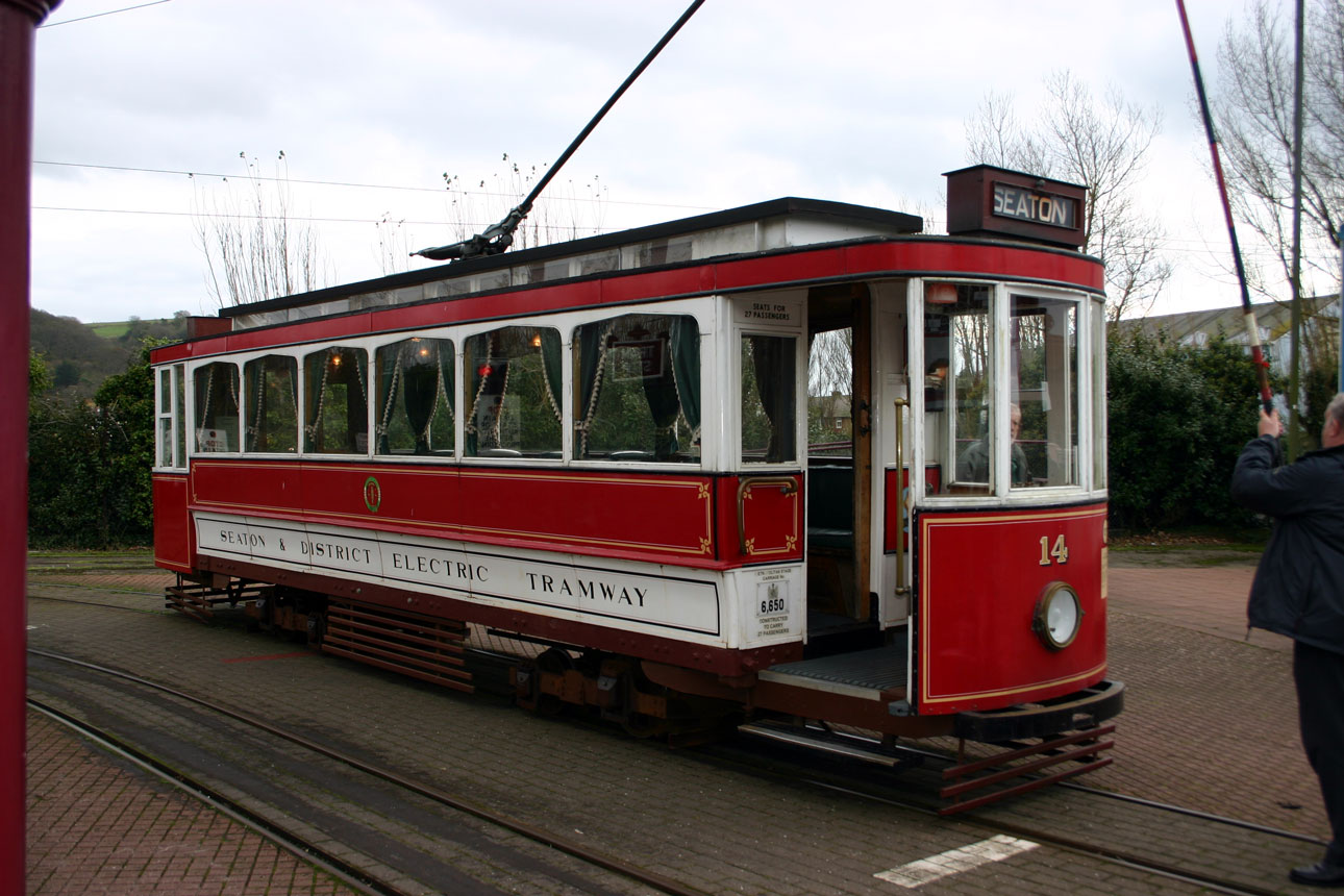 Seaton Tramway 14 was built in 1904 for Metropolitan Tramways as a double decker but by the time we initially catch up with here on 25th October 2008 it was a single deck enclosed saloon – a condition it had been since 1984 when it became the first of the converted first generation trams for the Seaton Tramway. Its seen here at Seaton terminus.