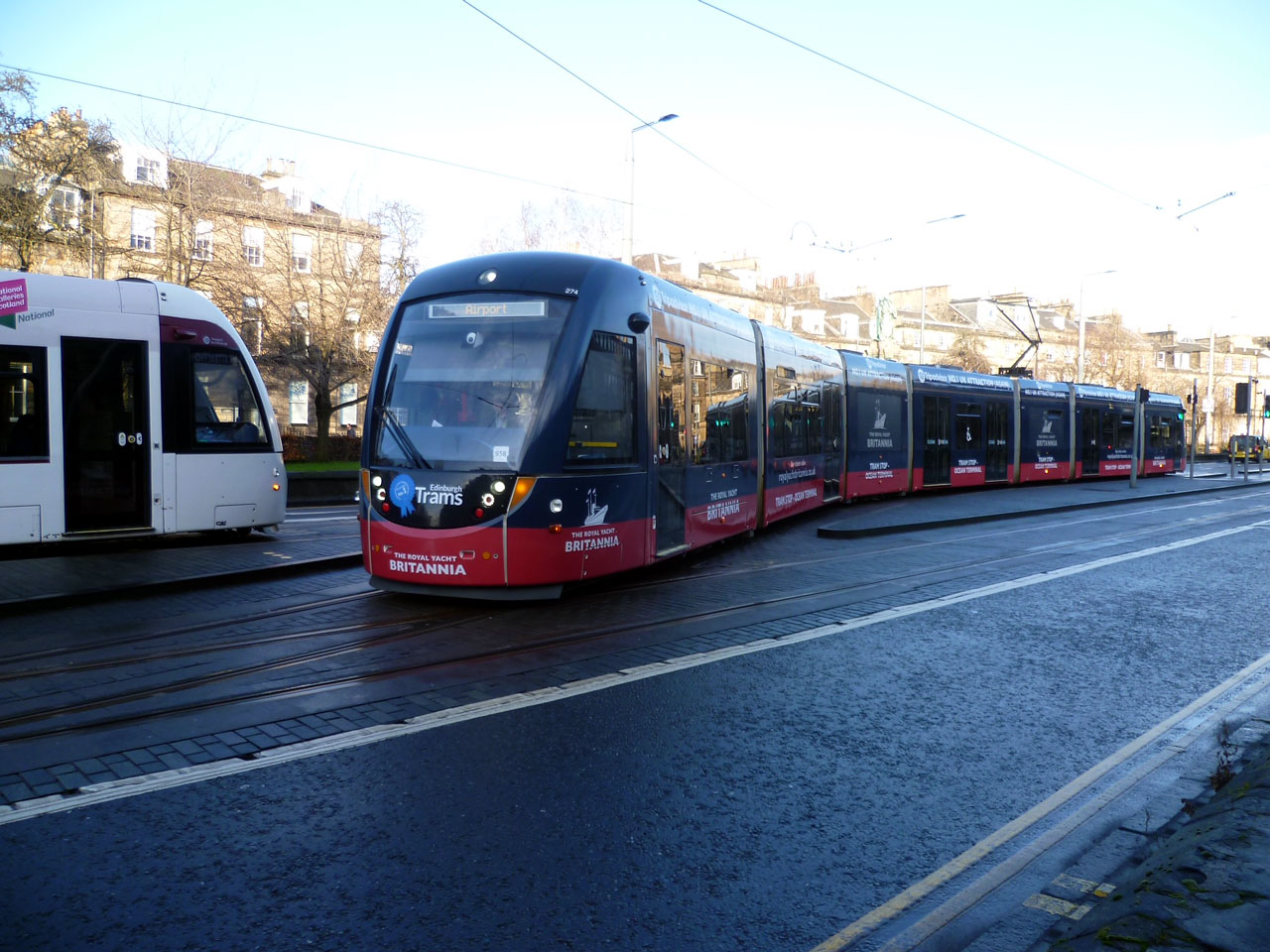 In this photo we see 274 departing from West End as it returns to the Airport. It uses the crossover to demonstrate that move for us. 264 is waiting for access to the platform so it can terminate its service.