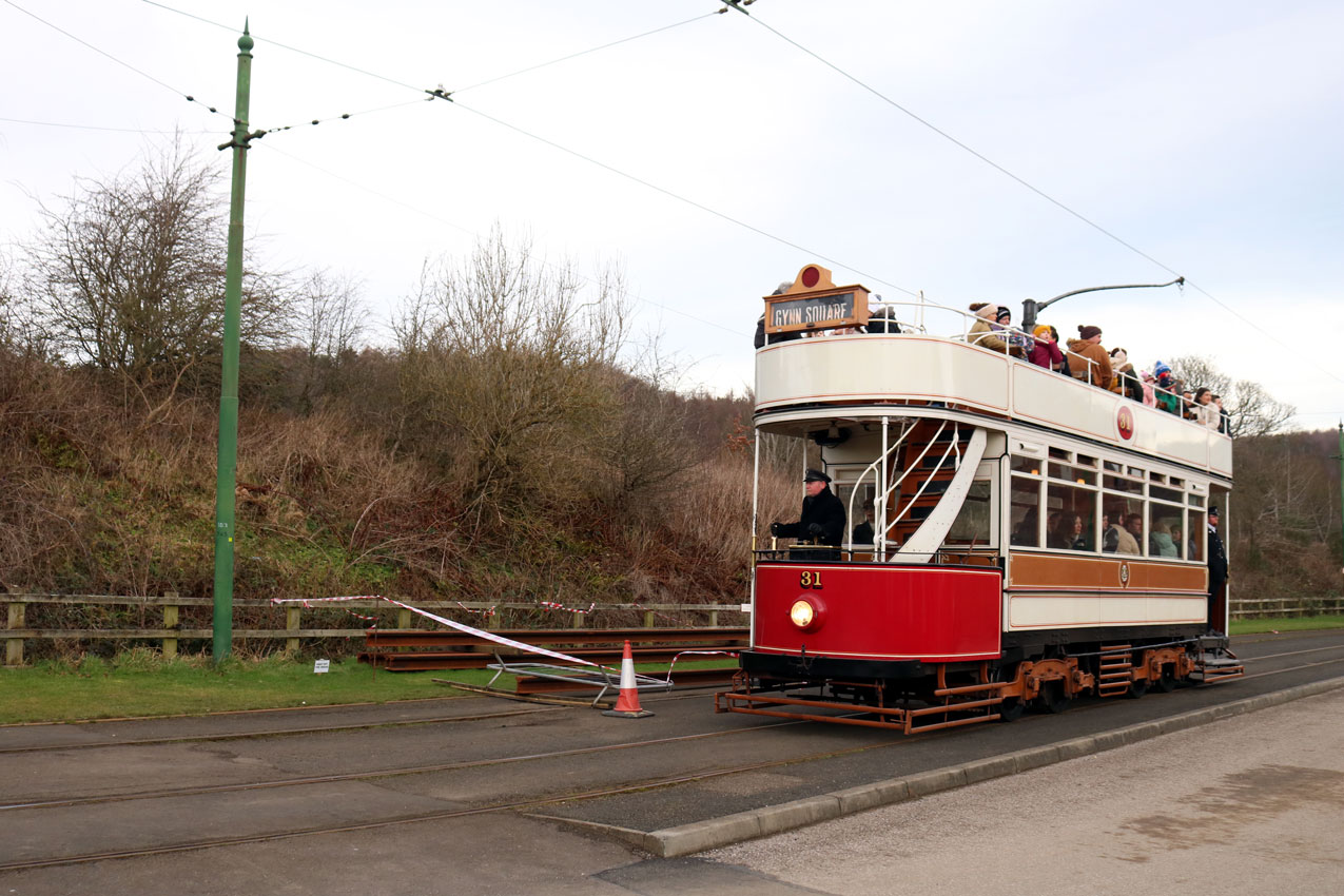 Blackpool 31 passes the worksite with work taking place on the curve from the Town towards Pockerley. (All Photographs by Trevor Hall, 28th January 2024)