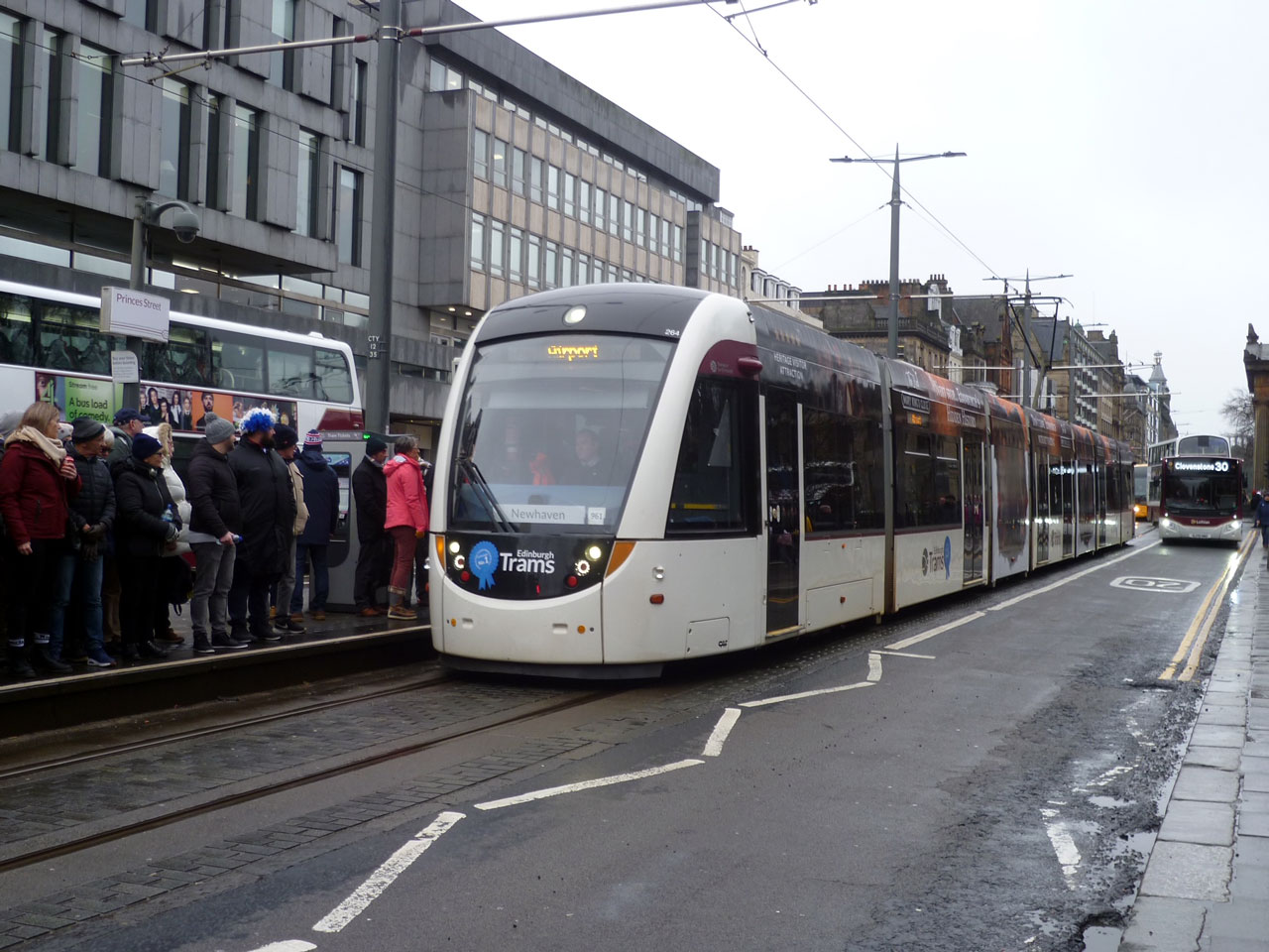 264 now arrives at Princes Street (this wasn’t the next tram but still large crowds remained) to hoover up some more passengers.