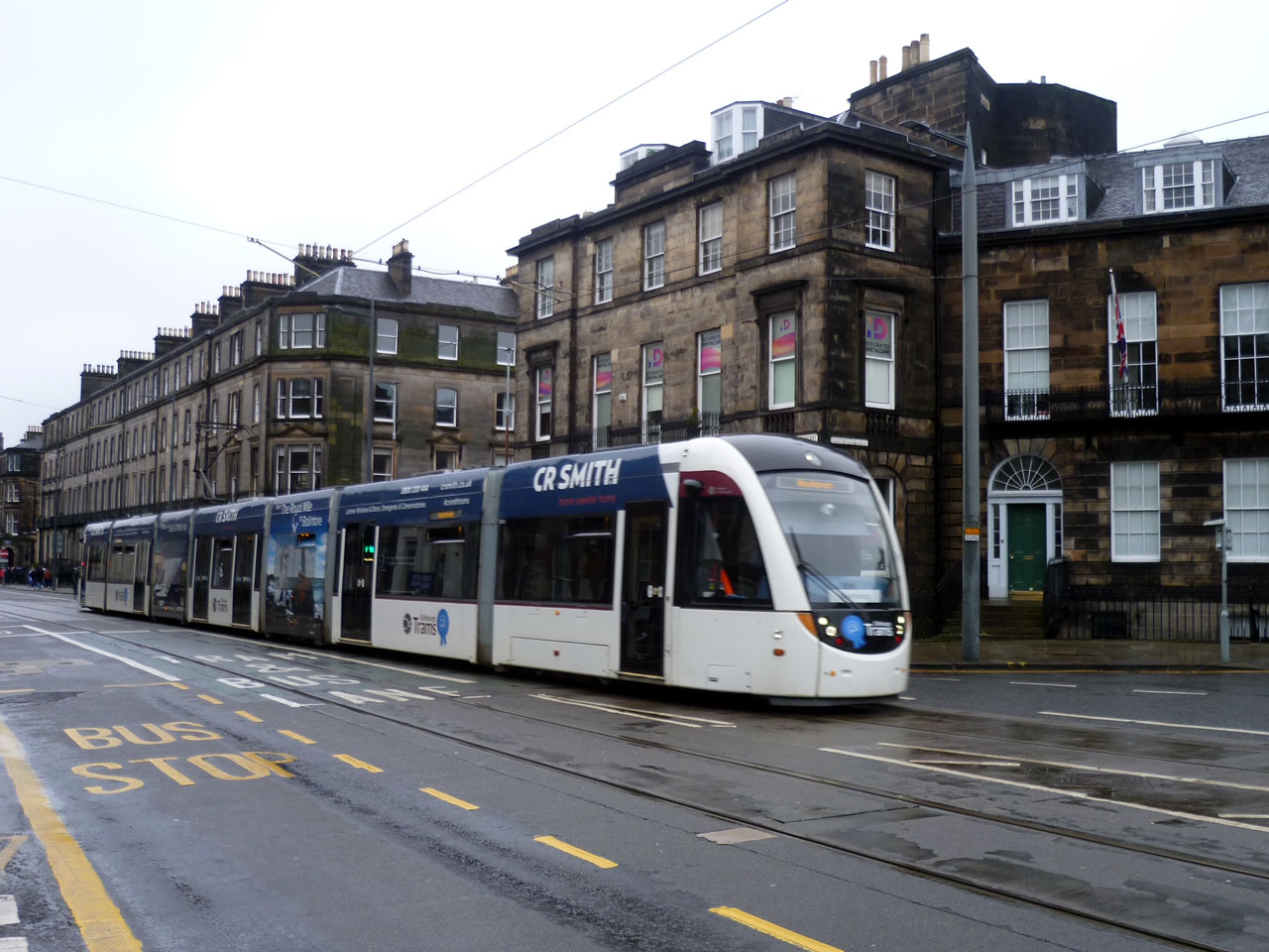Continuing a walk towards Haymarket and we now see 253 at Coates Crescent approaching West End. As its heading to Newhaven its going away from the rugby crowds so it will be an all together calmer journey for the tram.