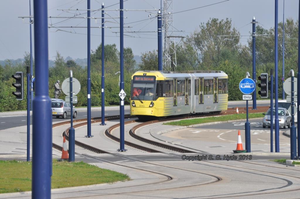 3042 descends the incline from Ashton West at Ashton Leisure Park.