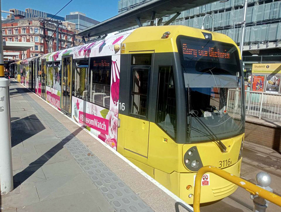 One of the other recent adverts to be added to a tram is this design for the National Trust on 3116. Shudehill again with a service to Bury. (All Photographs by Reece Hughes, 29th March 2024)