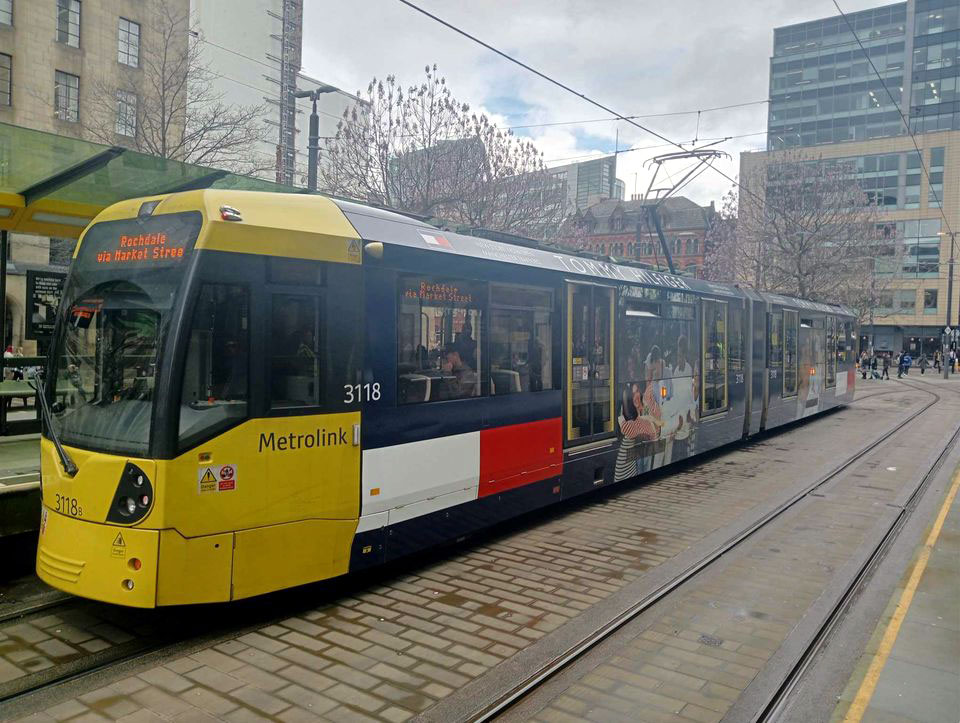 3118 calls at St Peter’s Square on the way to Rochdale. The service continues to run via Market Street. (Photograph by Reece Hughes, 5th April 2024)