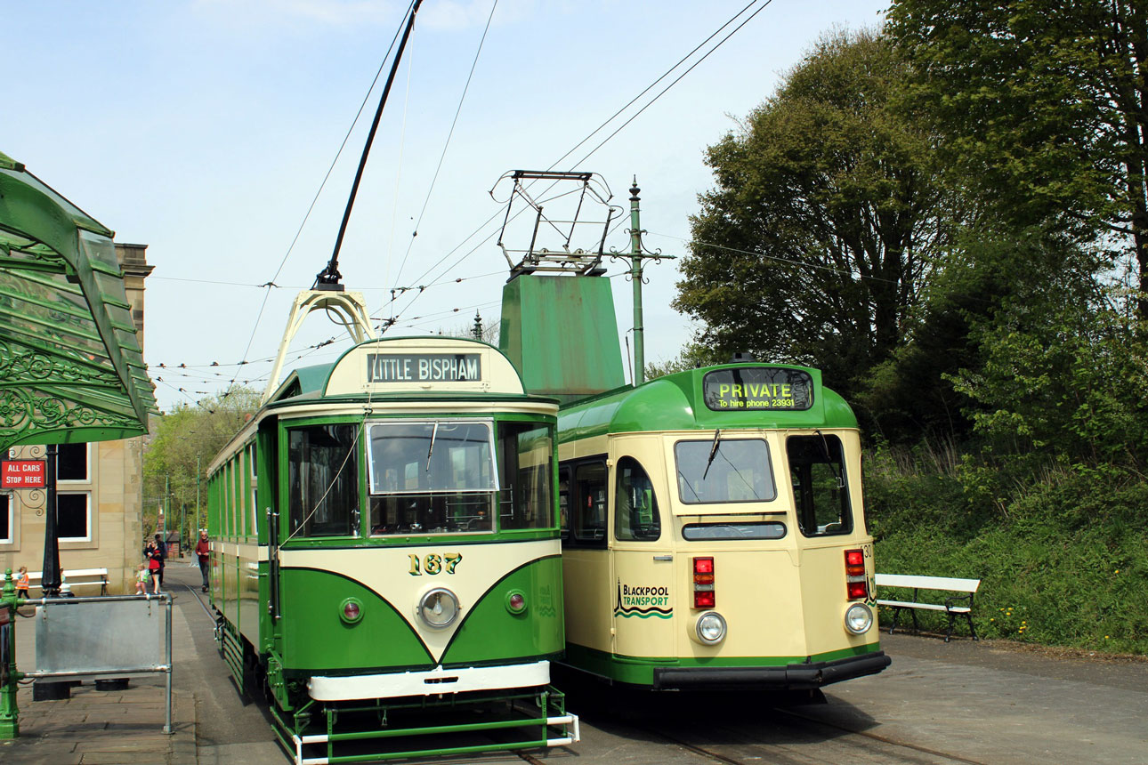 Blackpool single deckers 167 and 630 – both of which have received paintwork attention in recent months and are now looking resplendent as a result – pose for the camera at Town End.