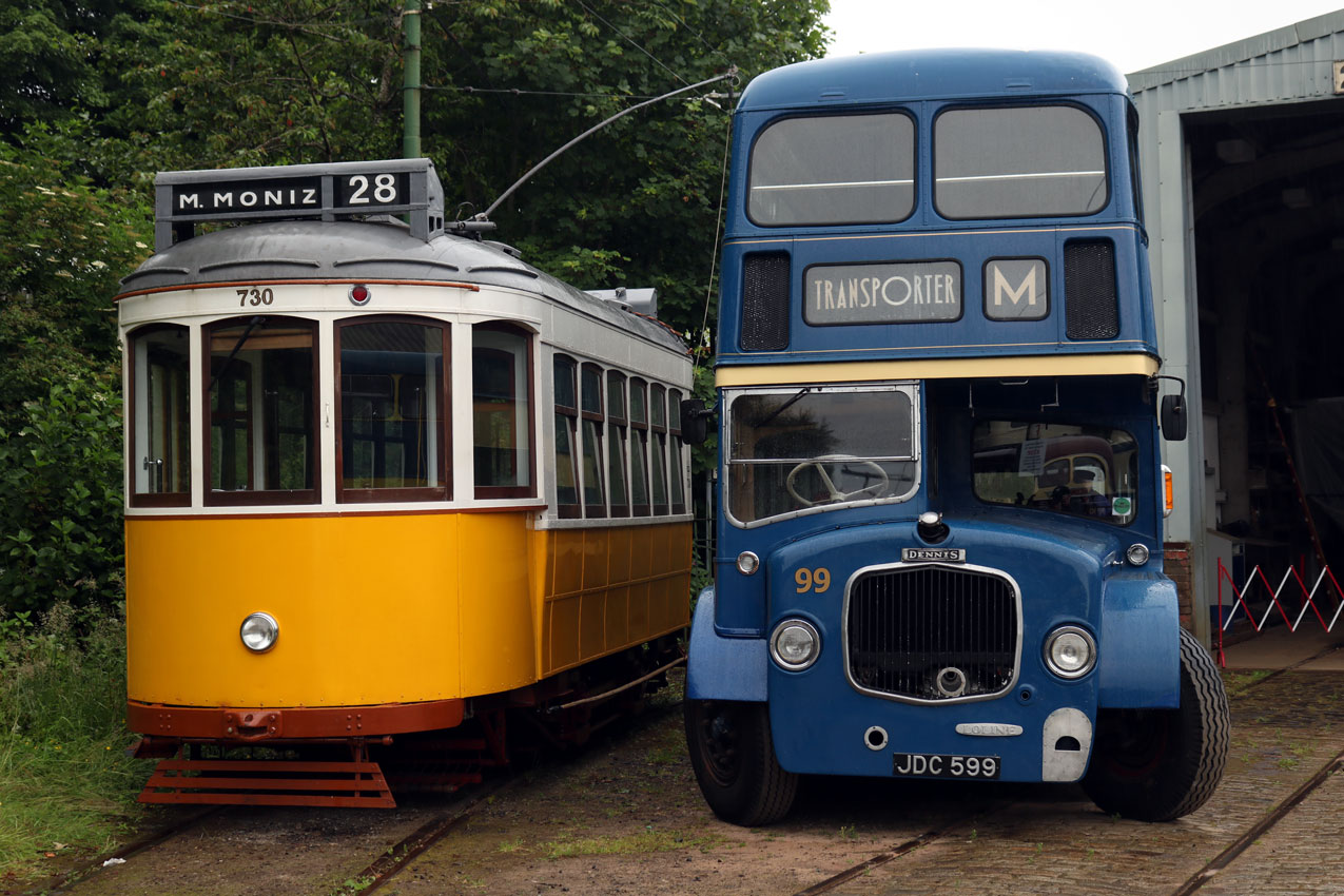 Lisbon 730 is now joined by Middlesbrough Corporation Dennis Loline 99 JDC599 outside the depot.
