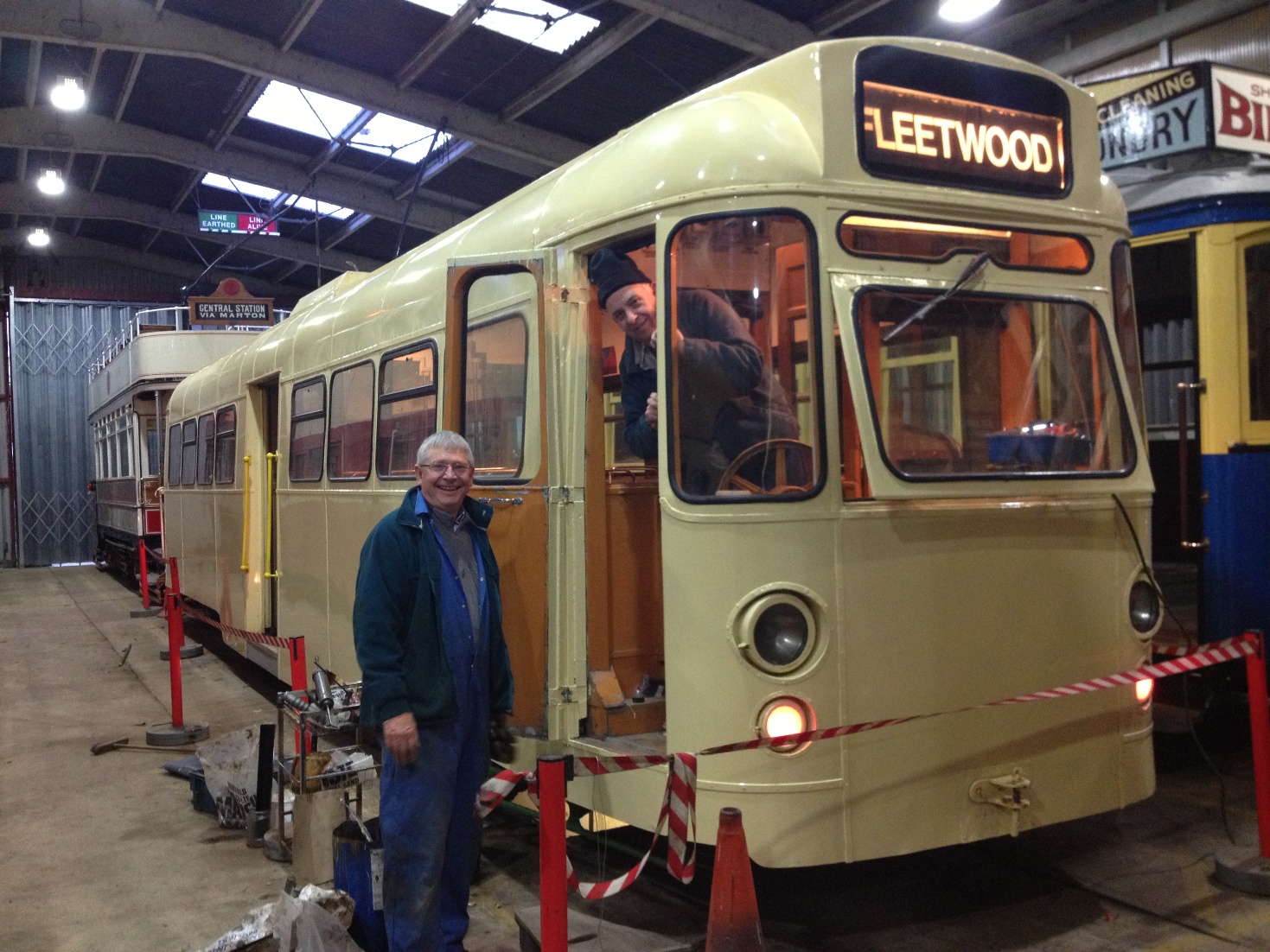 A recent view of 680 in the tram shed at Beamish as work to commission it for service progresses. Alongside is Oporto 196, recently returned to use following motor repairs. (Photo from the Beamish Transport & Industry Blog)
