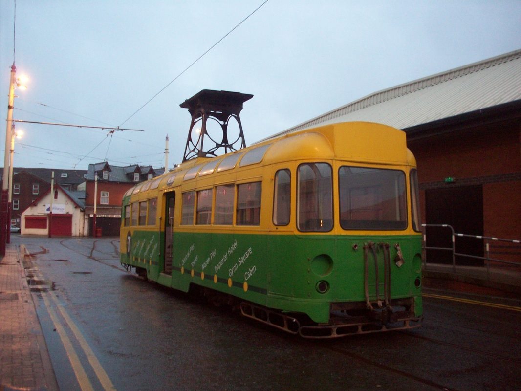 Seen at Blackpool after being split from its trailer, 671 is pictured with its pantograph tower still intact, surely before it was prepared for departure for its short stay in Merseyside in December 2011. (Photo by Rob Bray)