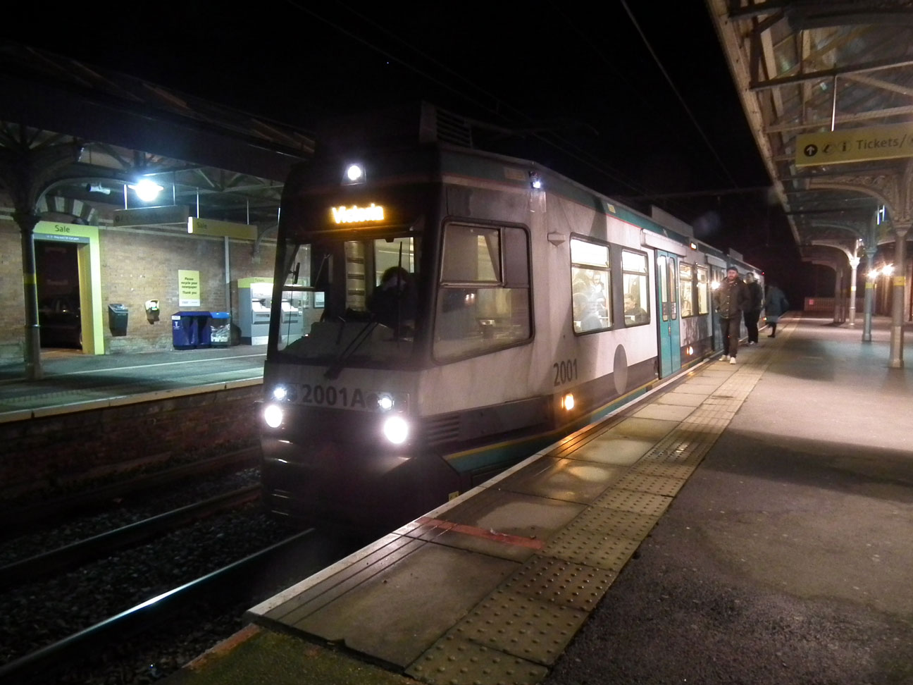 The last trip of a T68A on the Altrincham line? 2001 pauses at Sale.