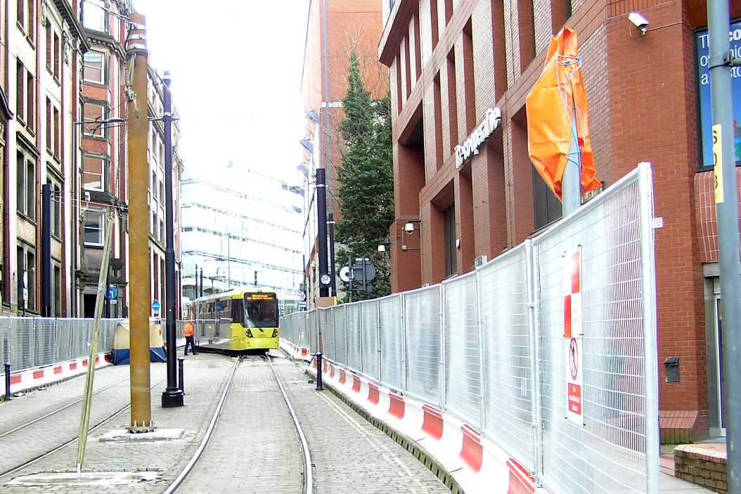 Looking up Balloon Street from Corporation Street as a M5000 uses the crossover.