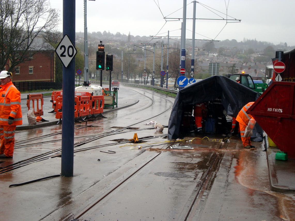 Due to the dismal weather the workmen were trying anything to keep the area they were working on dry as seen here with a tent. (Photo: Stuart Cooke)