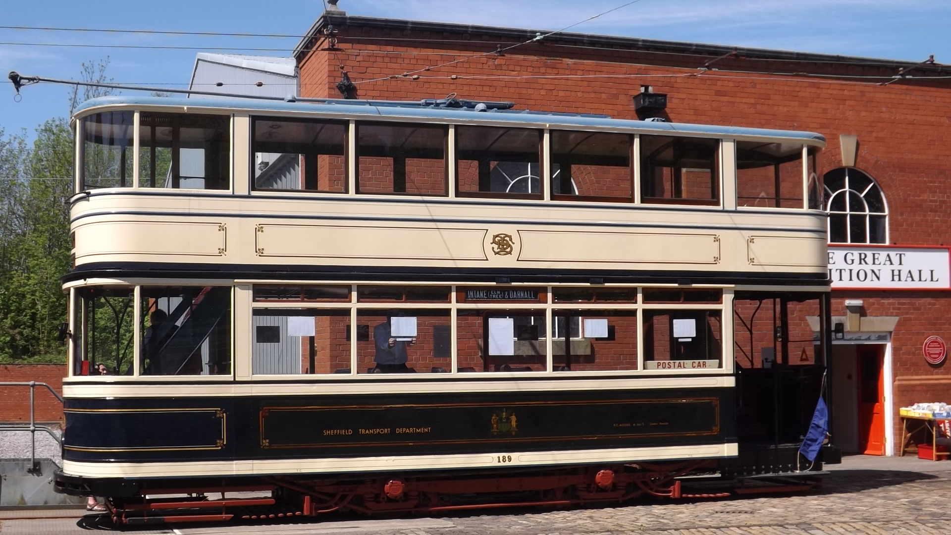 A more familiar view of Sheffield 189 whilst displayed in the depot yard at Crich on Saturday 17th May. Its appearance here is a little deceptive as the lower side panels are in a very poor condition, which can be seen when examined more closely. (Photo by Tony Waddington)