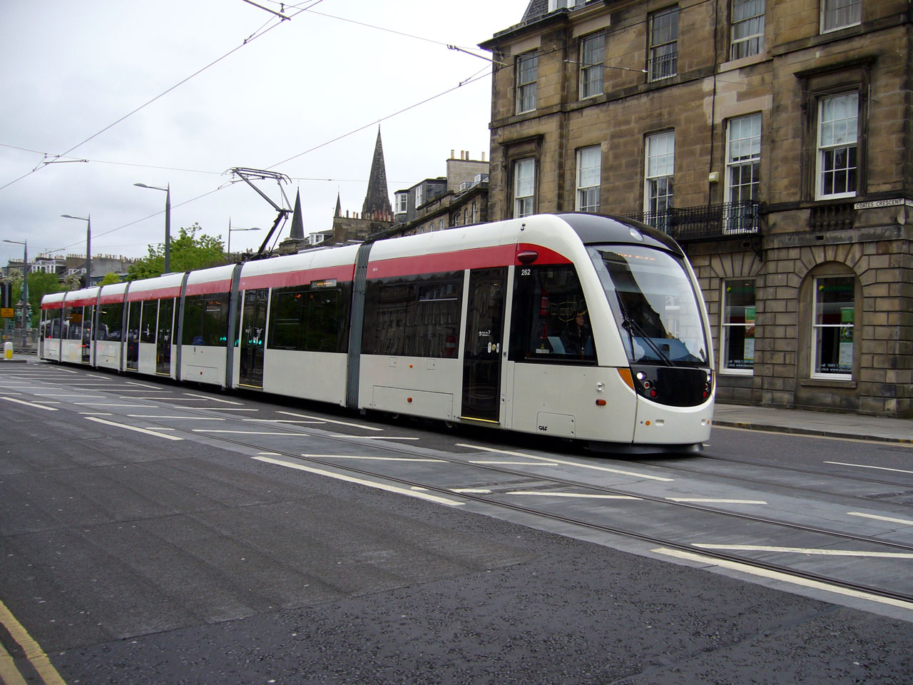 Although the majority of the Edinburgh Trams fleet have received the latest livery style the “as delivered” style is still carried on at least one vehicle – 262. This tram has been used on testing several times over the past few days and is seen in this photo having just left the Princes Street West tram stop and is passing through Coates Crescent and about to enter Shandwick Place heading for Princes Street and thence the York Place terminus. (Photo: John Hampton)