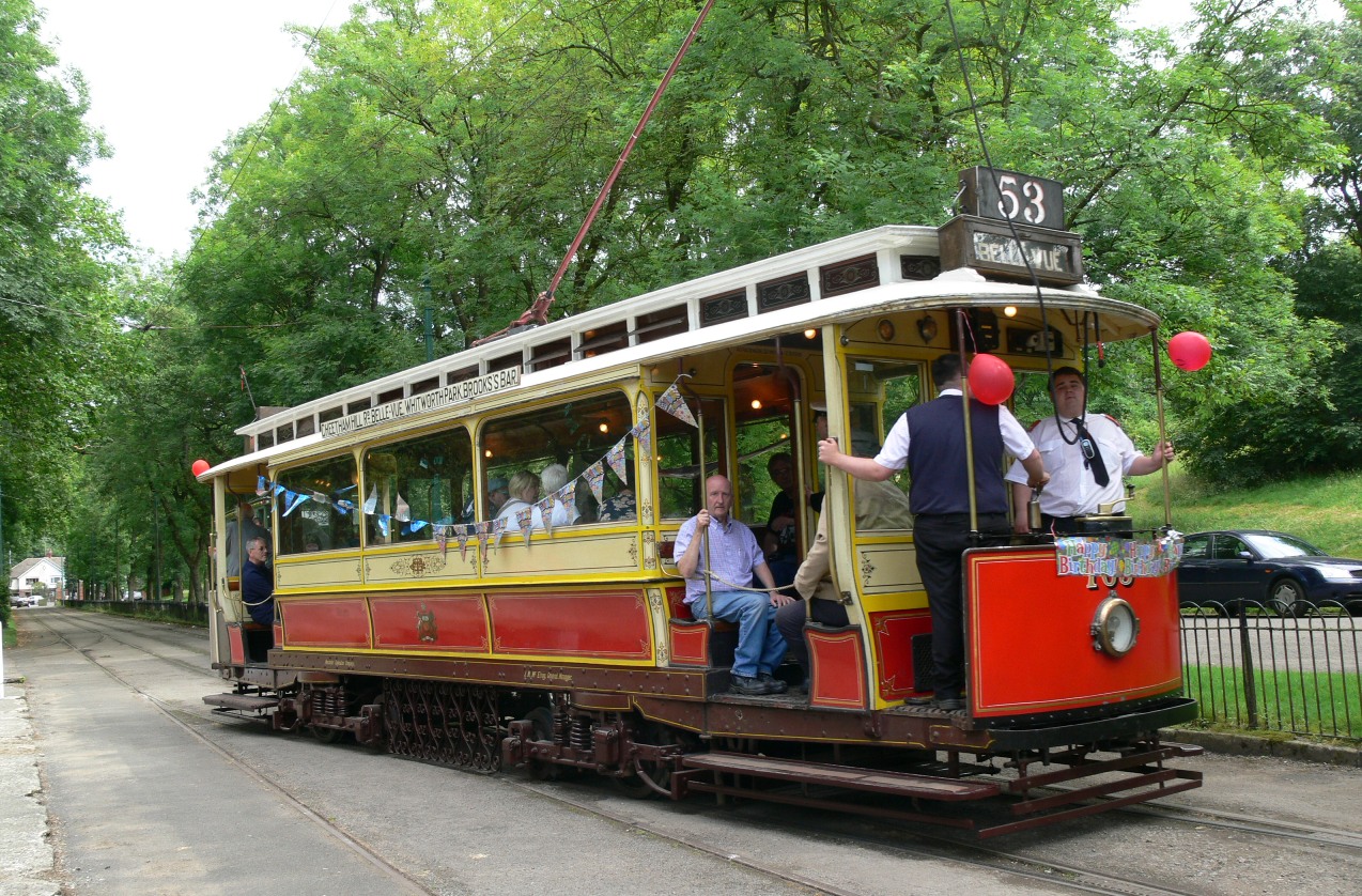 Later on in the day, Manchester 765 is seen on the lower section of the line with its decorations clearly visible.