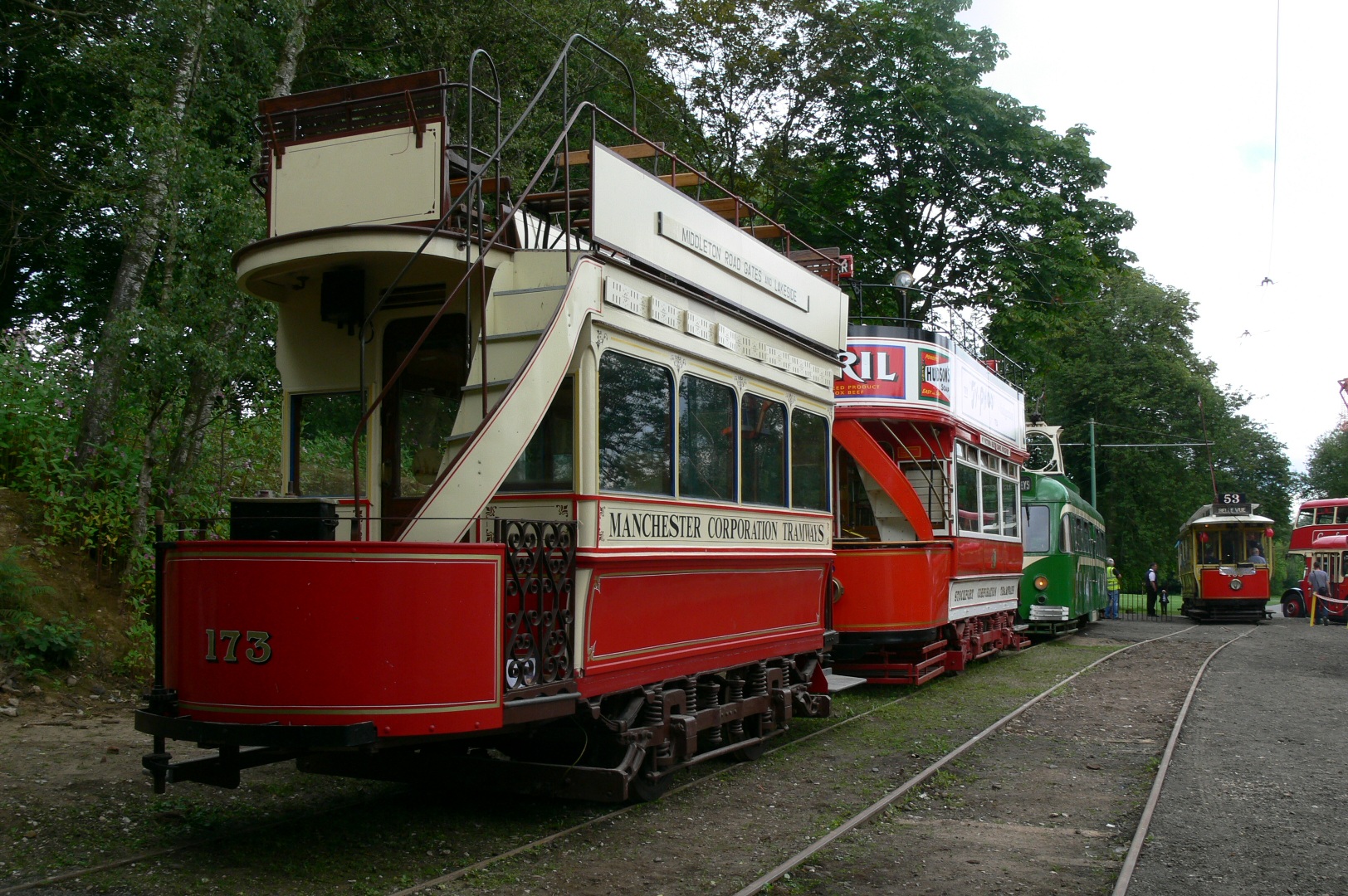 For your writer the chance to see Manchester 173 in daylight was probably in daylight. One of the day’s many impressive line-ups is shown here, with 173 joined by Stockport 5, Blackpool 623 and Manchester 765 at Lakeside. (Photos x 3 by Andrew Waddington)