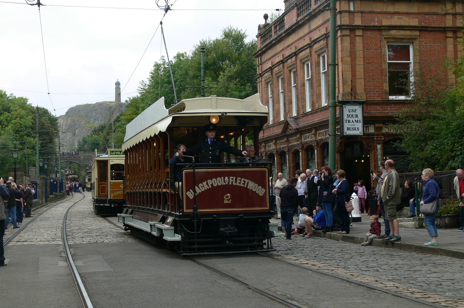 The Sunday cavalcade is welcomed by crowds of delighted visitors as Rack 2 leads 26 other trams past the Red Lion at the climax of the ‘Electric 50’ event.
