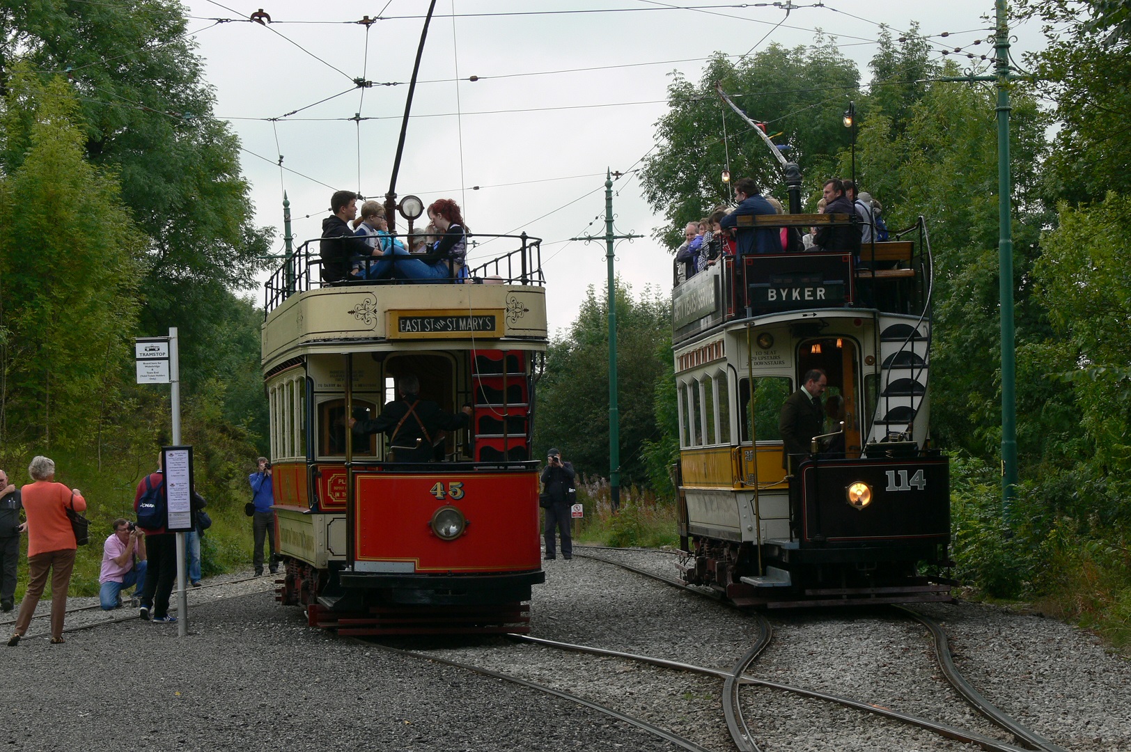 Thank you and goodnight from Southampton 45 on its last day in service for a while, as it passes fellow open topper Newcastle 114 at Glory Mine. (Photos by Andrew Waddington)