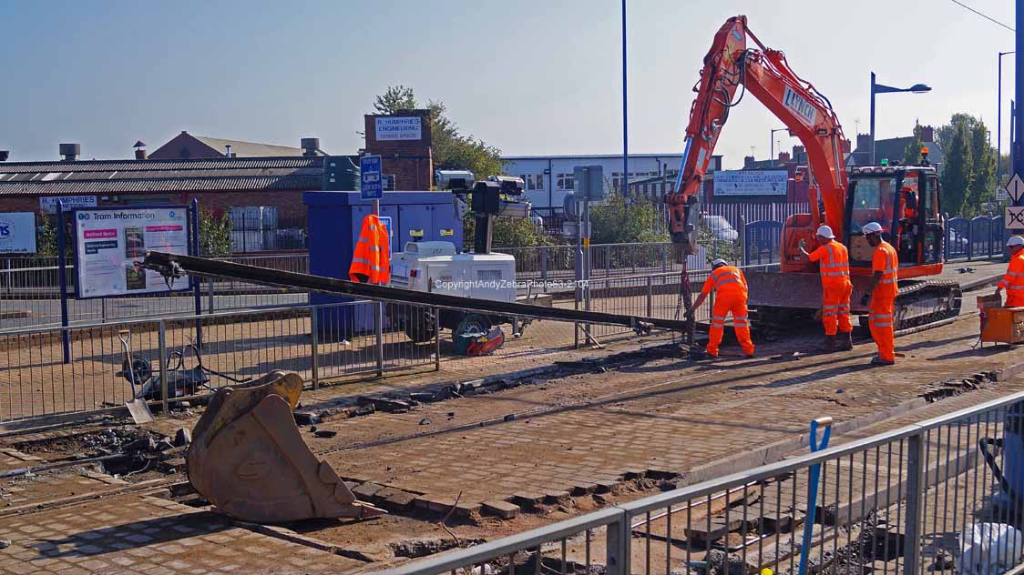 Three images of The Royal stop showing the state of play on 18th September with a section of the track removed and waiting replacement.