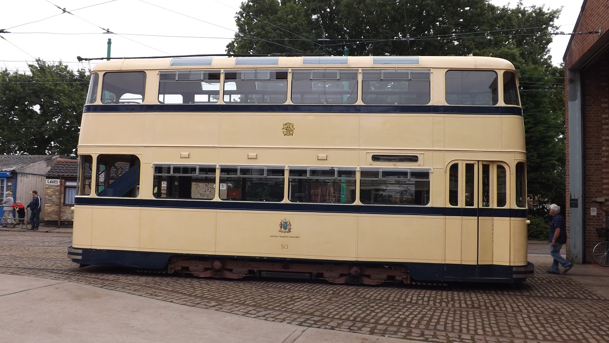 Despite being confined to the tram shed at East Anglia for much of 2014, Sheffield 513 did make an appearance in service at the ‘End of Season Gala’ event and is pictured here in front of the depot waiting to enter service on that occasion. (Photo by Tony Waddington)