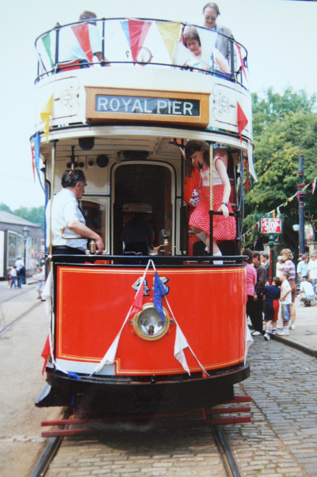 A head-on view of 45 with its number partly obscured by bunting. Just visible in the background are the advertisement hoardings disguising the old wash bay area, long before the workshop extension was built. (Photos x 2 by Andrew Waddington)