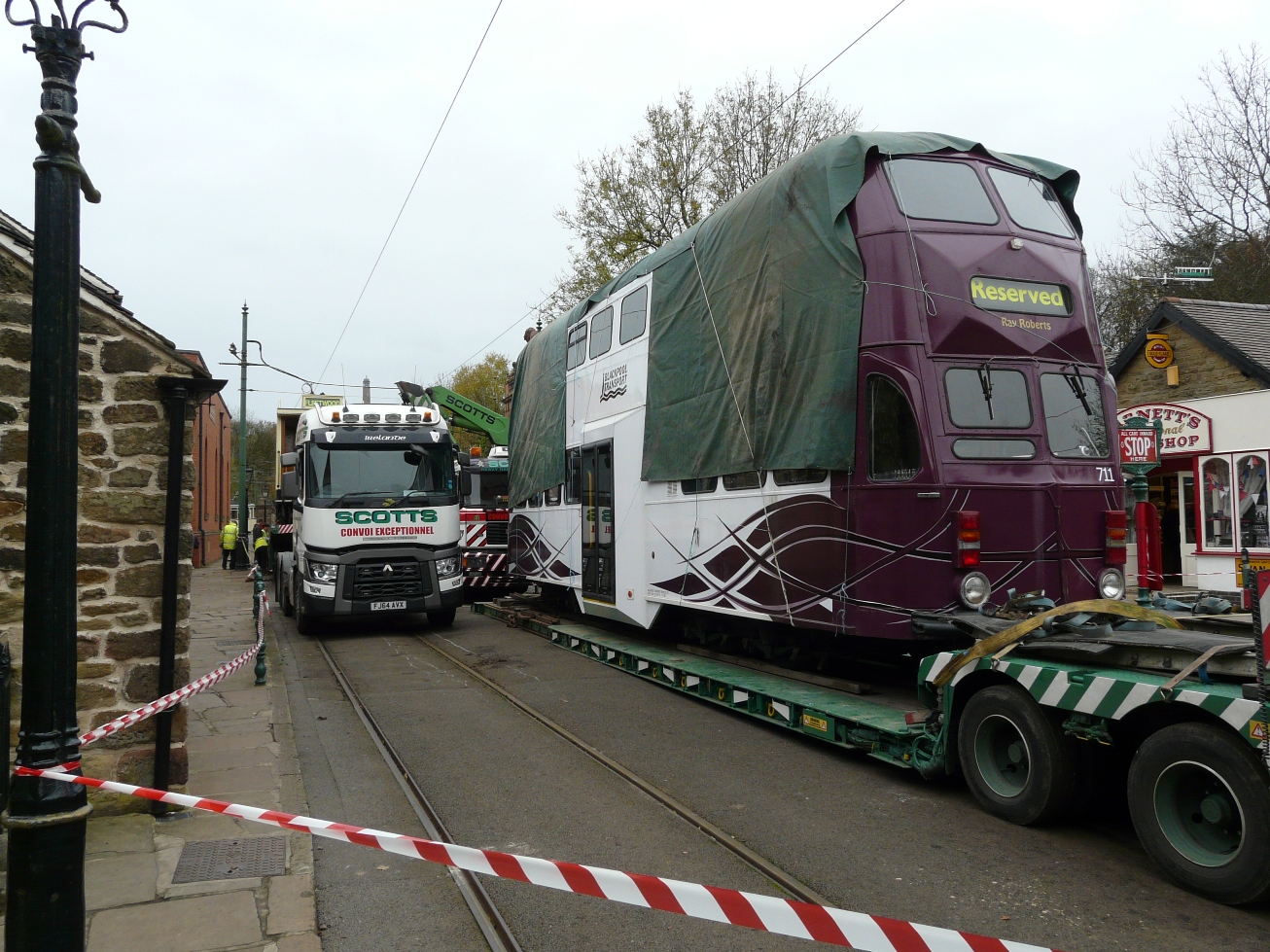 With the street cordoned off for the safety of onlookers, final preparations are made for Box 40 & Balloon 711 to leave Crich, with both cars loaded up ready for return to Blackpool on 29th October.